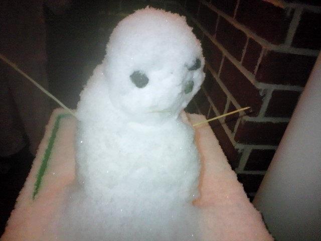 んで、玄関先には長女が小さな雪だるまと称するものを作成していました。