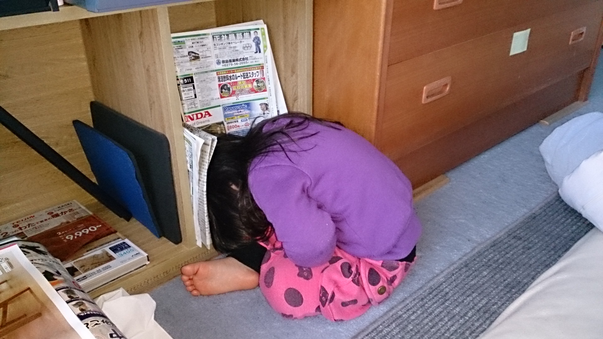 珍しく二女が昼寝をせずに(普段と違ってテンションあがってたから?)屋内で遊びまわっていました。