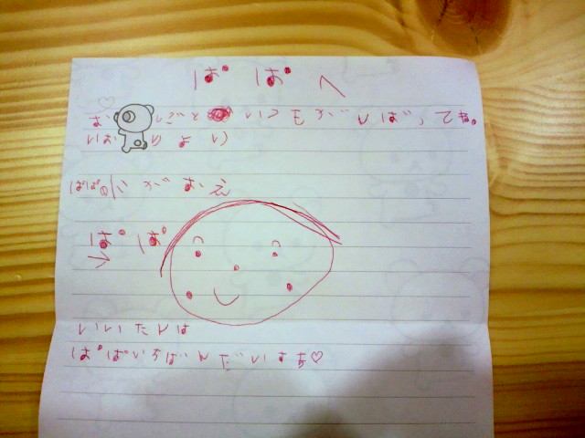 なにげなくテレビを観ながらぼーっとしていたら、長女が ぱぱぁ!お手紙あげる!
