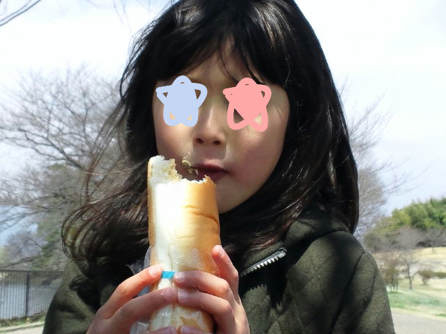 長女も遊びすぎてお腹がペコペコ!持参したパンをモグモグ♪