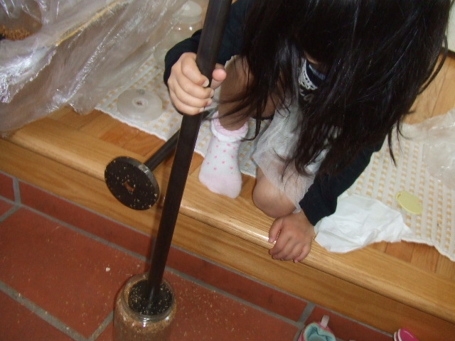 途中、綺麗に粒子をそろえるために私もかるく詰め作業を^^