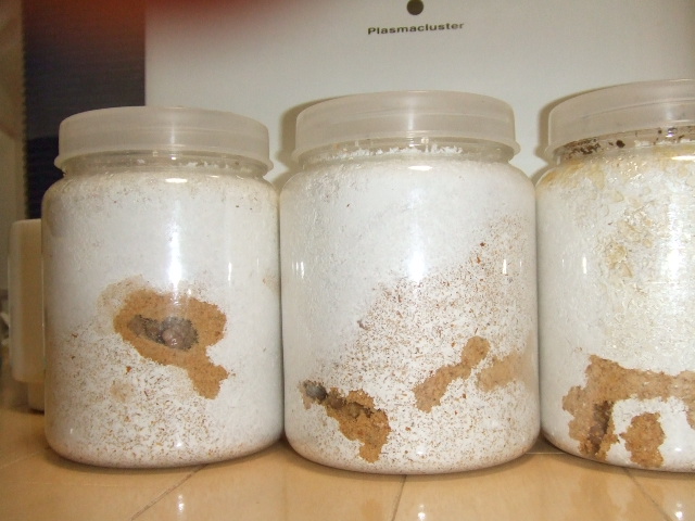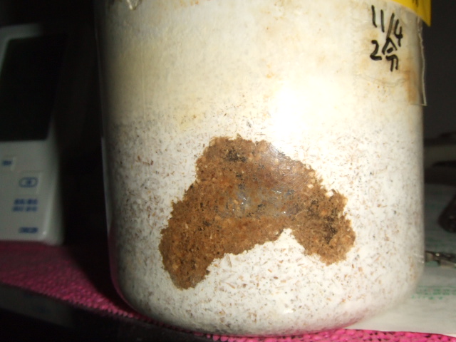 ↓ こちらは初使用のGP菌糸ですが、一応菌床部にいるみたい。