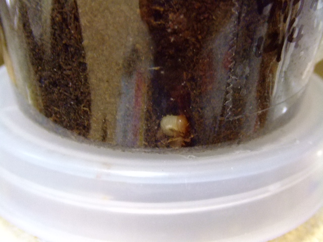 ↓ ちゃんと菌糸に馴染んでる幼虫もいます。これはFE菌糸のライン