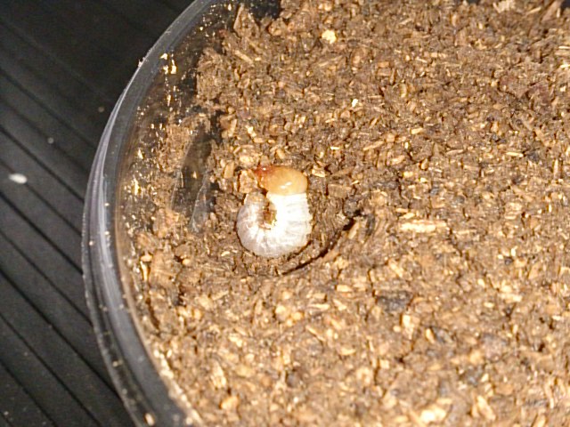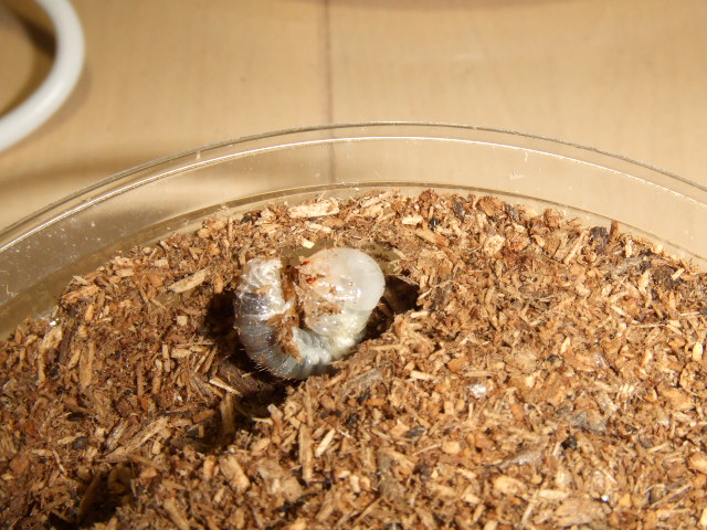 そして、今年のブリードで得た幼虫で一部成長してきた幼虫を菌糸に移しておいてますが、とりあえず菌糸部分にいってる幼虫もいるみたいです。