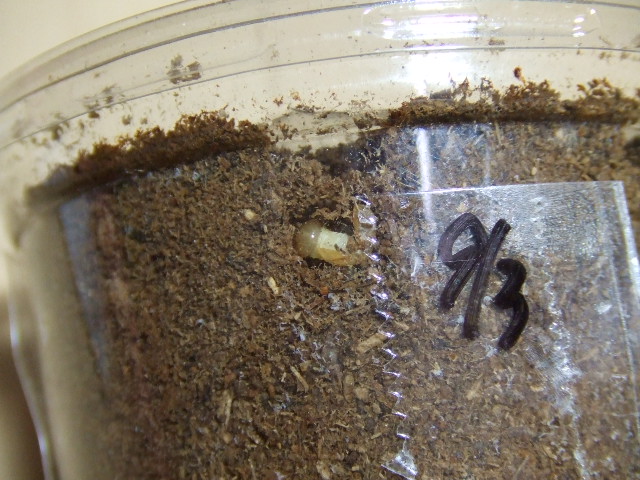 ↓ 去年採れた幼虫のボトル交換です。