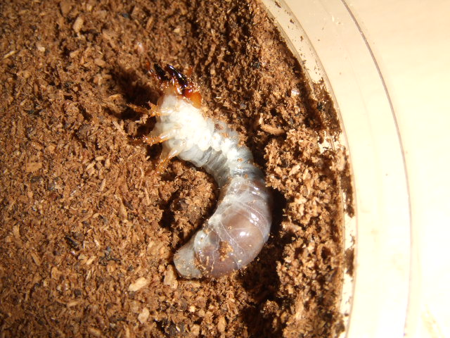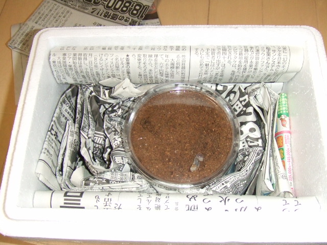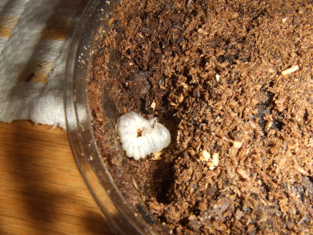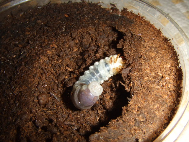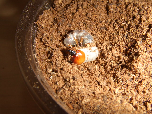 そして姿の見えてないカップをほじってみたら、、なんと加齢直後で真っ白な頭の幼虫が出てきました。
