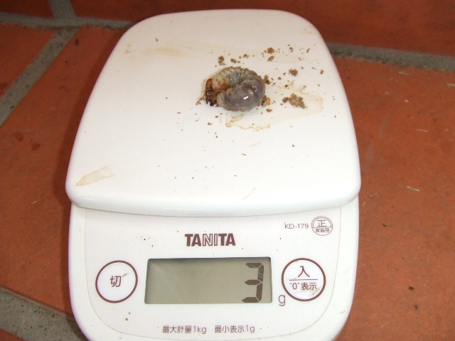 ↓ ウッディとかの幼虫は小さくても一応は体重確認で^^