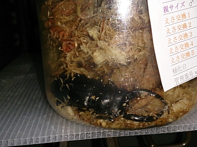 この外気温が猛暑が続く中、へんに活動スイッチが入らないようにけっこうな低温で休眠させていますが、他のクワガタ同様に外気温や季節感を感じてしまってるかもしれませんね。。