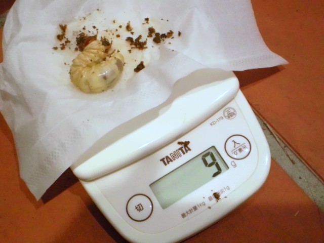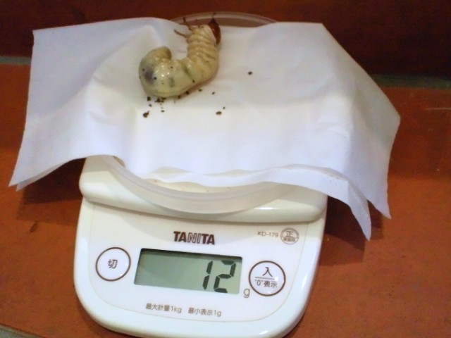 まだこのほかにメスのボトルでいい加減幼虫期間が経過してるヤツもいますが、菌糸も劣化してきてます。しかし、最下部にて落ち着いてるので交換しようかどうしようか迷っています。