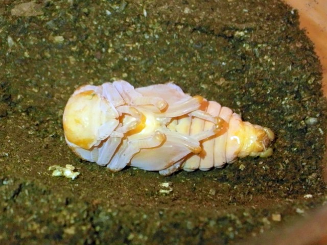 ↓ そして掘り出した♀の蛹です。交換時の体重は12gあった個体です。