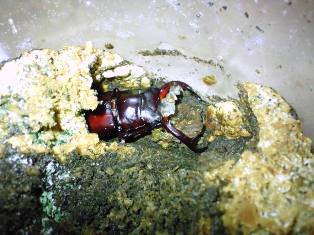 これから休眠させて来年の春先くらいに活動できればいいなぁと思いながらも、このクワガタはとにかく幼虫期間から羽化して活動するまでが長いのなんの。。