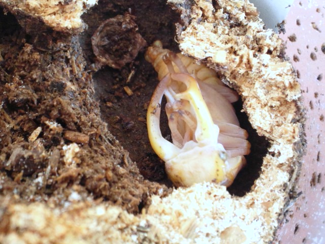 ↓ けっこう色が濃くなっているんで蛹化してからしばらく経過してたようです。