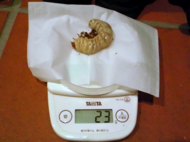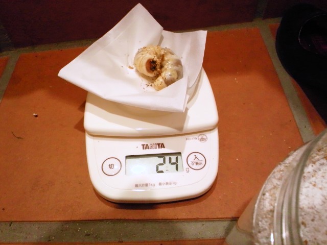 こちらの幼虫は一応大型血統というラインなんですけども、写真のように2本目移行時の体重があまり思わしくありません・・・(>_<)