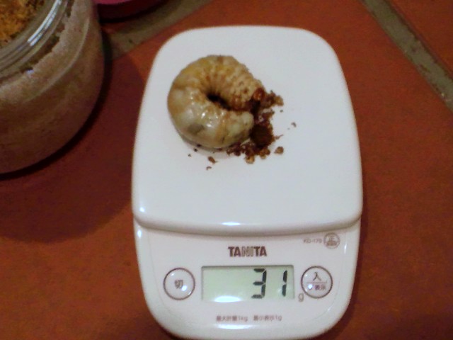 こちらは投入時には30gの幼虫でしたが、ずいぶんと暴れてボトル内を崩しまくっていたので急遽ストックしてあったボトルに入れ替えました。