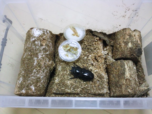 メスの顎がほんの少し欠けてみえる気がするので産卵木ではなく、この小規模な菌床産卵セットでテストを兼ねてやってみようと思います!