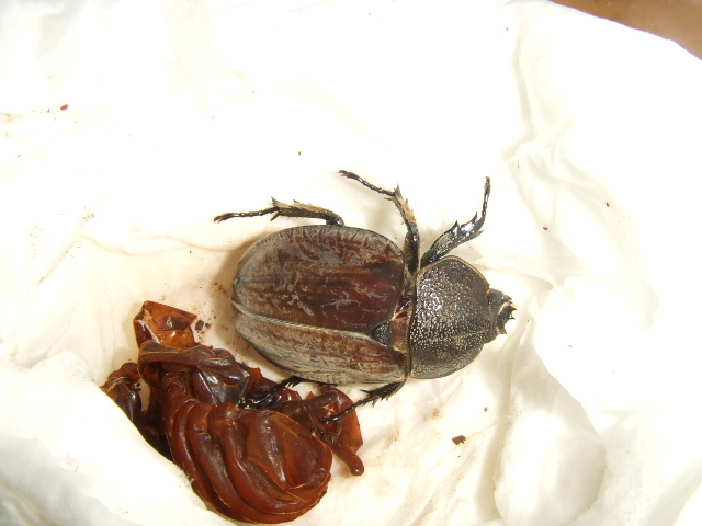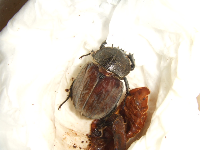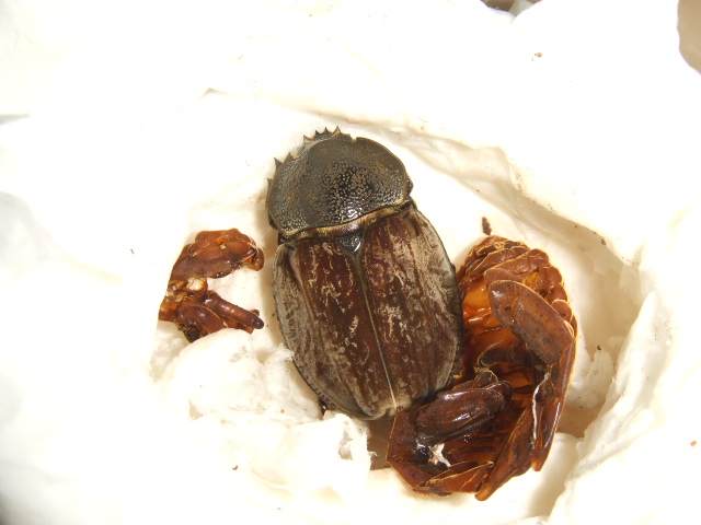 4月の下旬に大量のコバエが発生して、発見と同時にすぐさま玄関先に出てボトルをひっくり返したら蛹がでてきたグランディスコフキのメス。