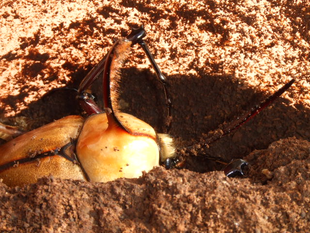 よく蛹室で折れたり曲がったりしないものなんですね。でも前蛹で転がり落ちちゃったやつは、ツノ曲がりで蛹になりましたが。