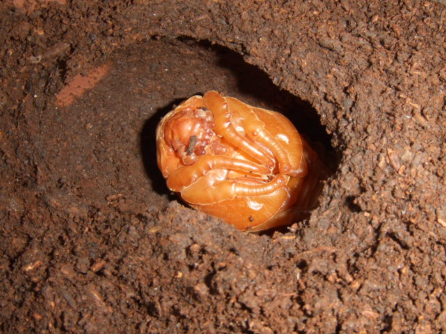 さて、この前にコバエ大発生のポルテリ幼虫のいる容器をひっくり返したら前蛹が出てきて大変だったんですけど、今度はスパサの容器をひっくり返したらこれまたまた前蛹が転がってきちゃいました><