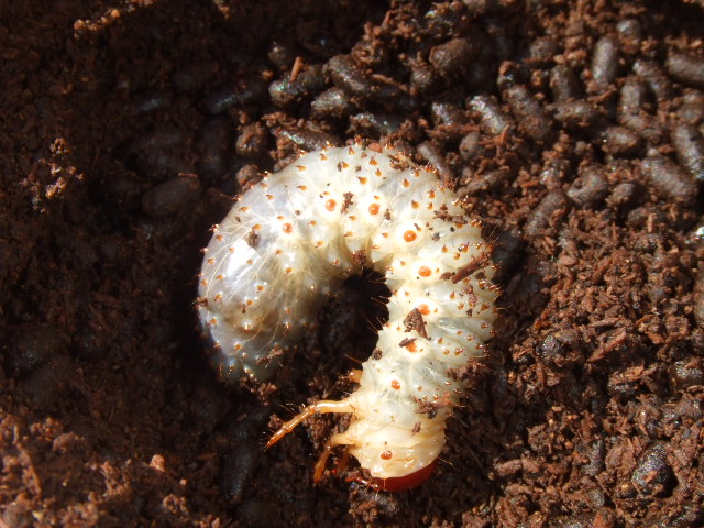 画像の幼虫はまだ若い状態で色も白くてイボイボもそんなには発達してない幼虫です。