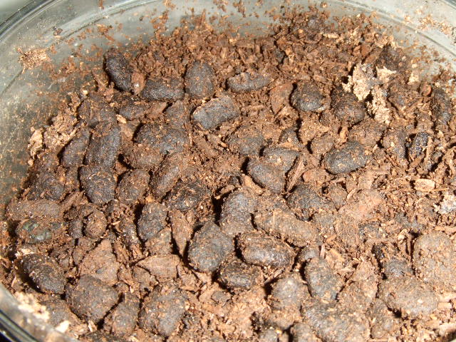 秋に孵化してるヨルゲンセン幼虫の430ccカップをたまには覗いてみるかと思って覗いてみたら、表面はコロコロしたフンだらけになっていましたね。。。