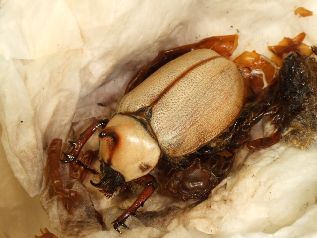 ゴロファ・スパサの幼虫を入れていた容器です。ボチボチと羽化してる個体がいるので、ほかの容器も確認してみることにしました。