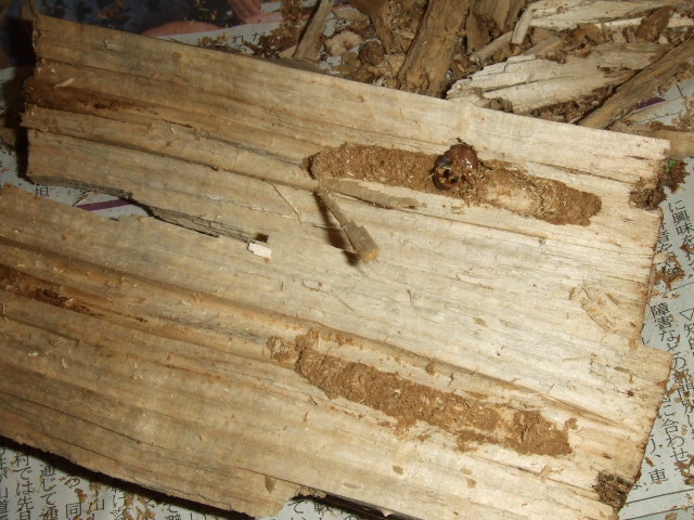 ↓ なにか幼虫がいそうな材ですね^^