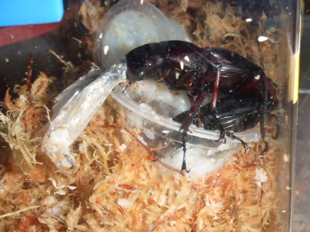 そして以前にブラジル産ブルメイスターホソクワガタのupをしましたけど、放置していてコバエがケース内に発生していたから、ほかに移る前にと思って掘り出してみました。