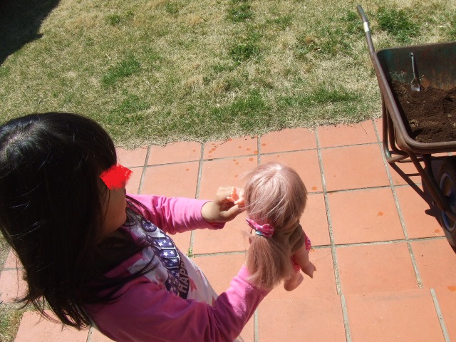 ↓ なぜか作業現場をお気に入りのメルちゃんに見せながら^^
