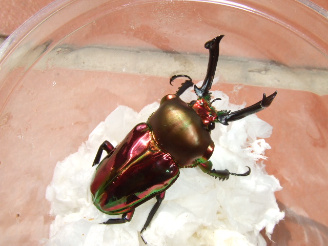 個人的には緑系のがニジイロクワガタらしくていいのかなぁなんて思っちゃってますが、この赤系のニジイロクワガタもまた実際に肉眼で見ると、いいですね♪