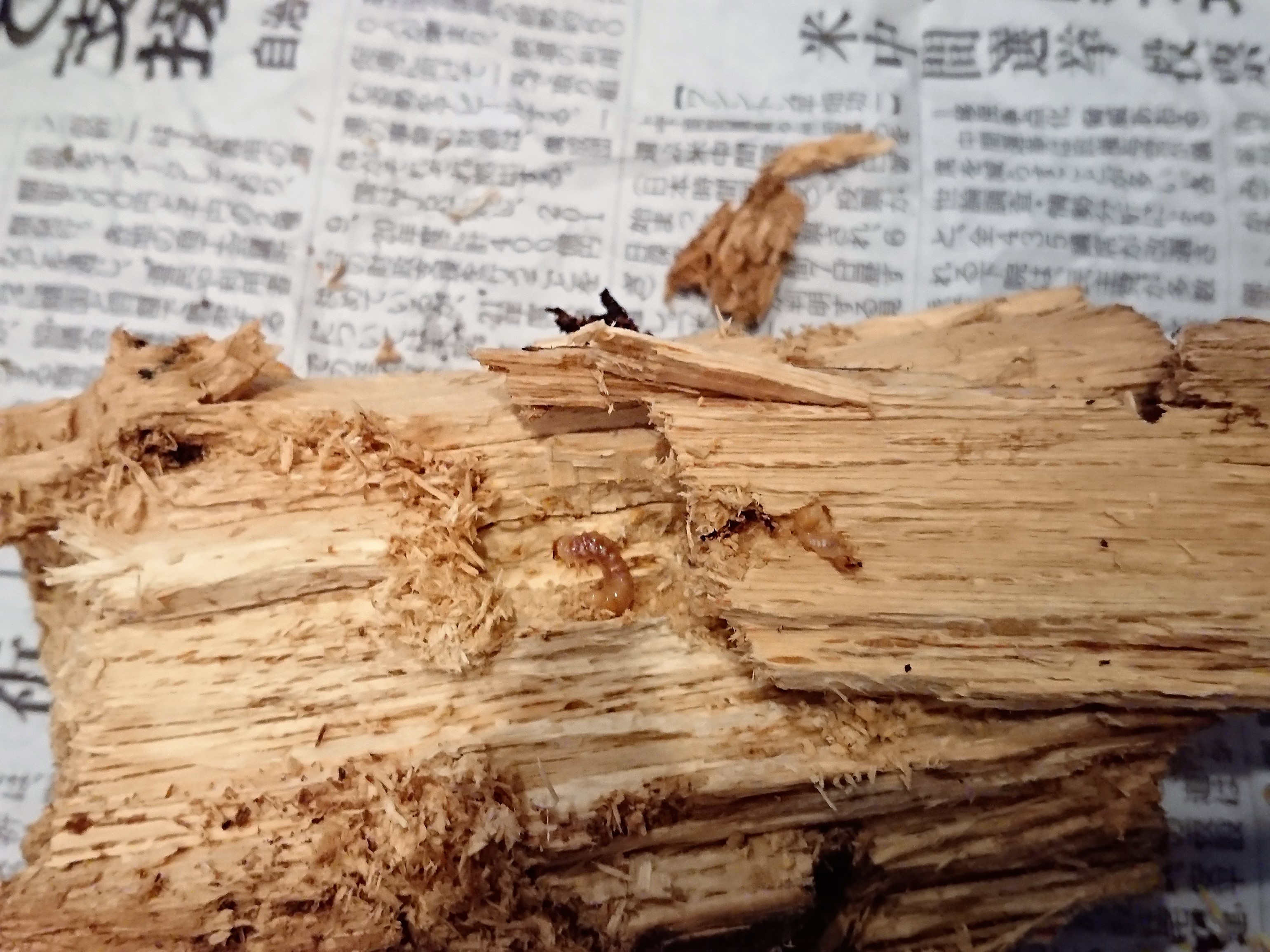 で、材を浮かせてみると、その下に幼虫がいたので予定外の材割確認までしちゃいました~