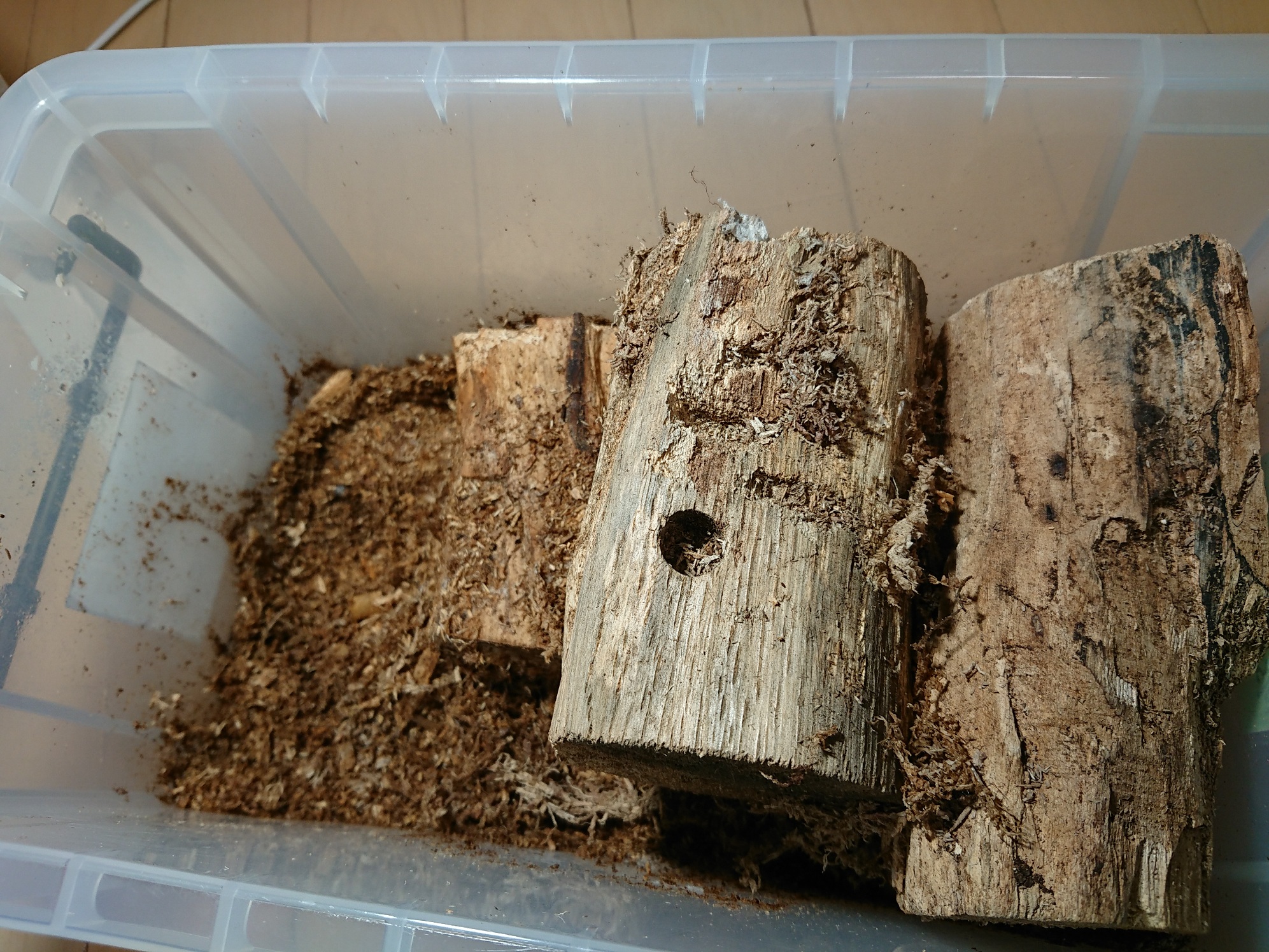 運良ければ今後の材割ではもっと成長した幼虫が出てくることでしょう。