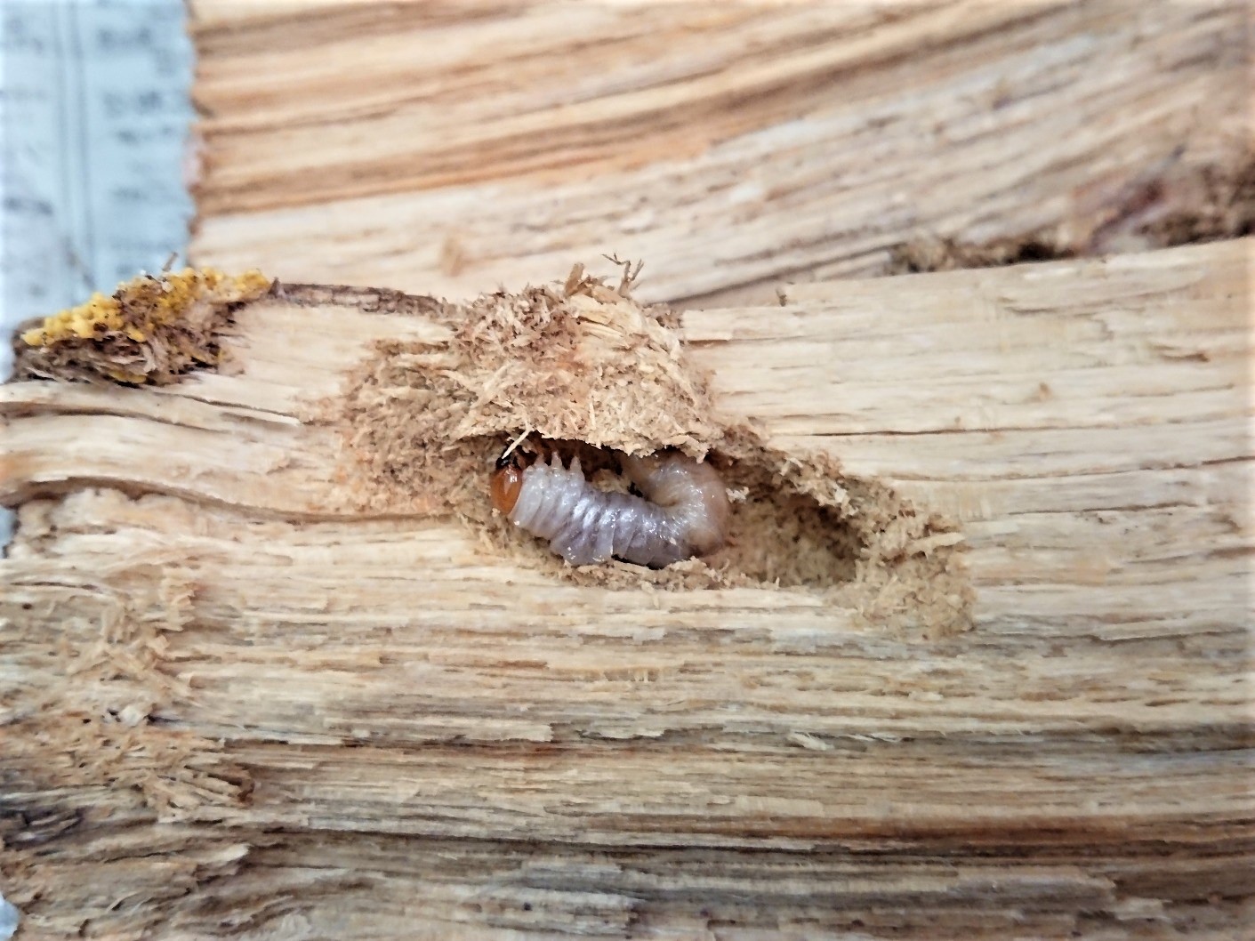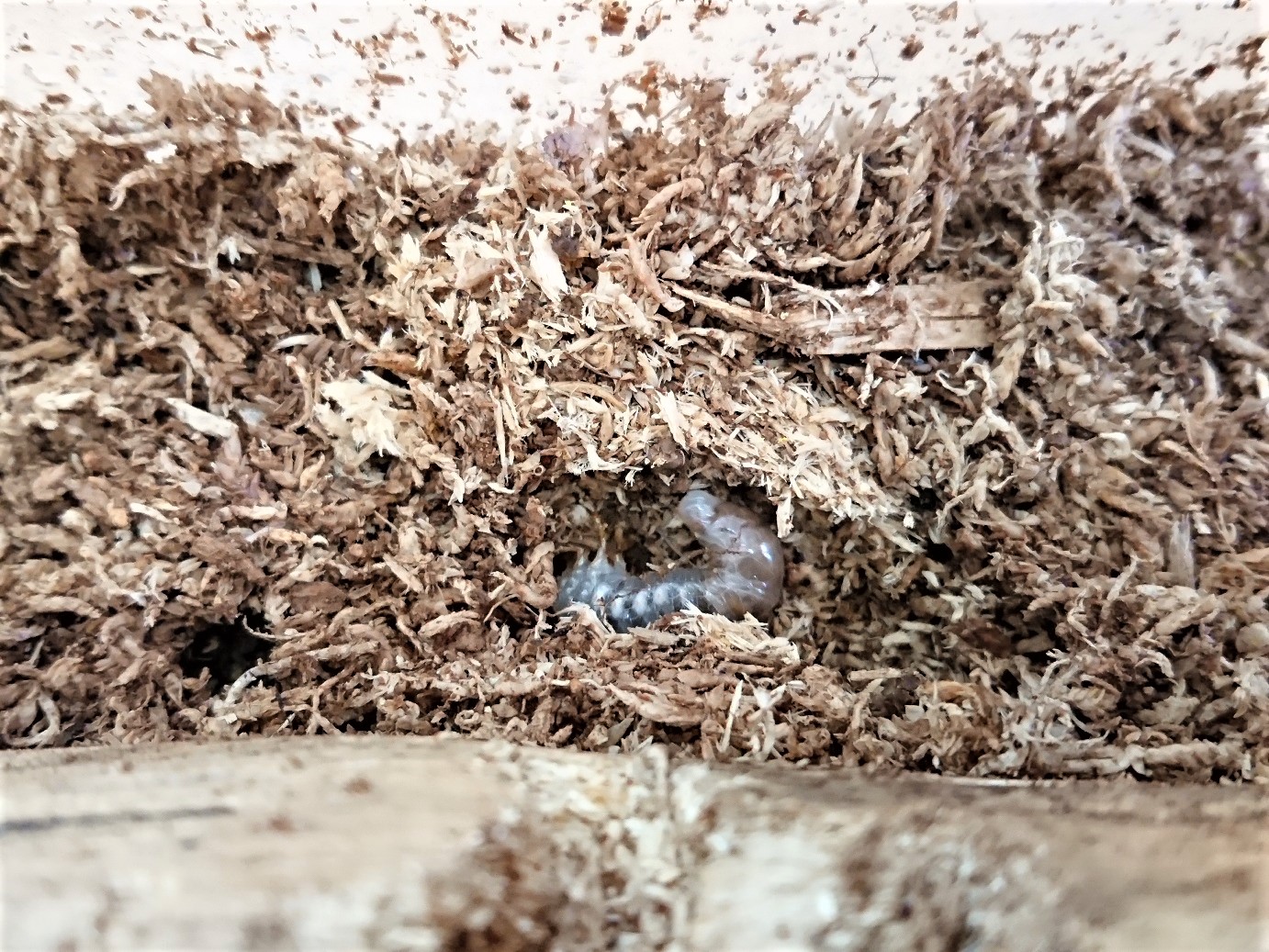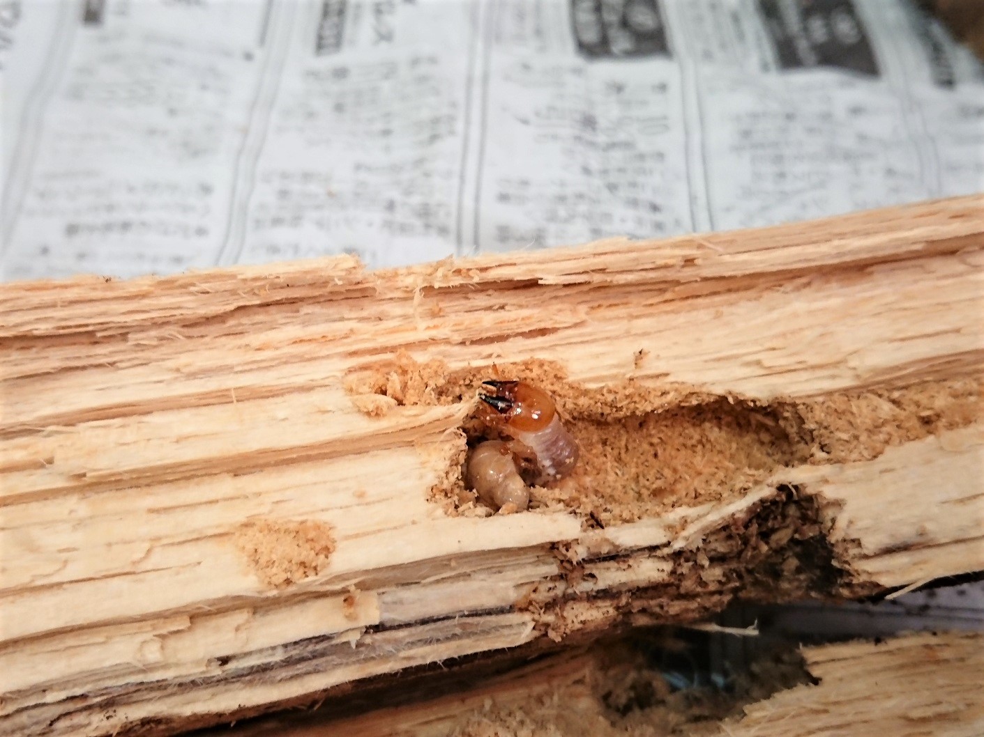 材の下にいる幼虫、材の中にいる幼虫がいました!