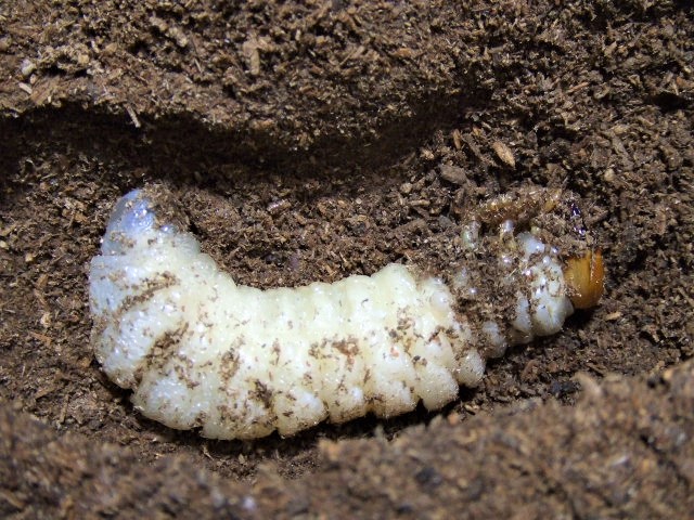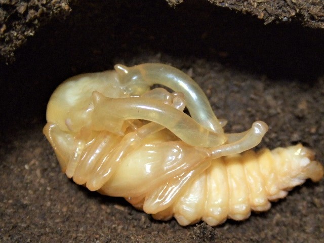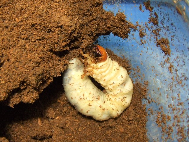 そして次のボトルをおもむろに掘り出したら、ビックリ!すでに前蛹になってる幼虫がいるではありませんか><