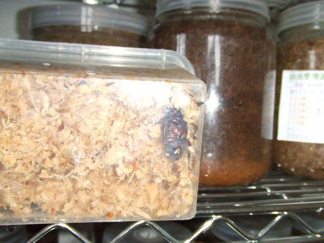 このメスは娘がミニセットを組んでおりまして、以前のupにもありますがケース側面には幼虫の姿もいました。