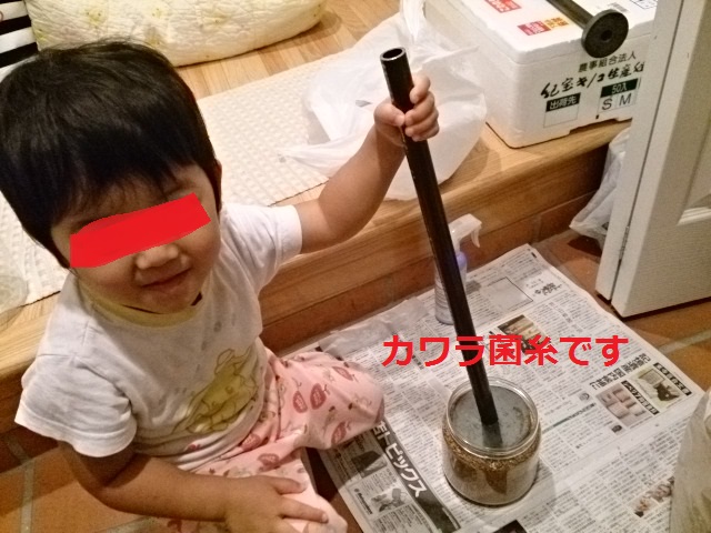 いい機会なのでこのFe3+を使えば、2歳児の雑な作業でも無事に発菌してくれればいいと思ってここは仕方なくやらせてみたです><