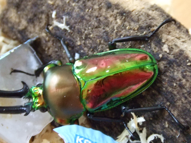 個人的には緑系のがニジイロクワガタらしくていいのかなぁなんて思っちゃってますが、この赤系のニジイロクワガタもまた実際に肉眼で見ると、いいですね♪