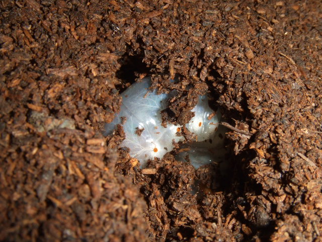 前回のポルテリ幼虫を確認していたと同時に、12月孵化のサタンオオカブトの幼虫が少し姿を出していたので安心しました^^