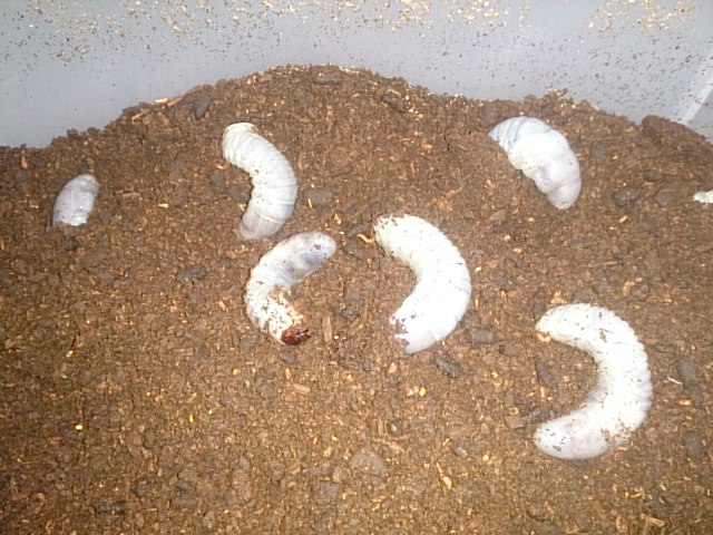 ワインセラー内で放置飼育中のサタンオオカブト幼虫たち。