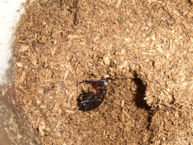 残りの幼虫がいるボトルを片付けようとしたら、死んでるどころかちゃんと羽化してるメスが新たにいたようです~