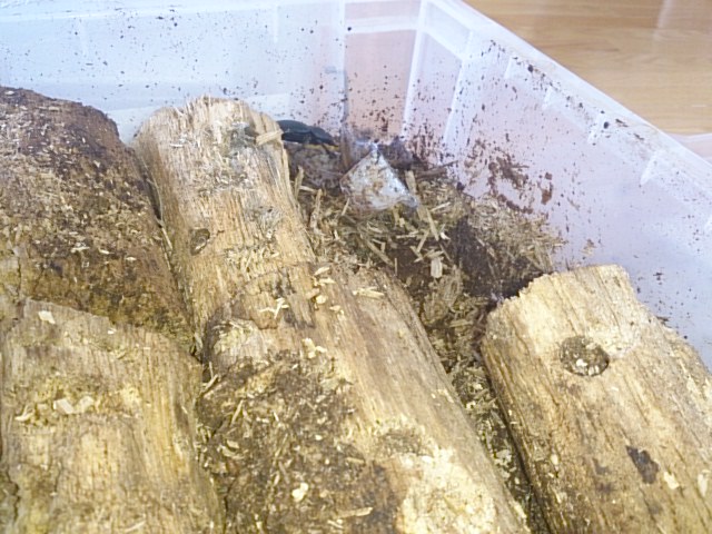 ここしばらく羽化してからかなり動きが活発でエサ食いもよくなってる感じがしたので産卵セットを用意してみました^^