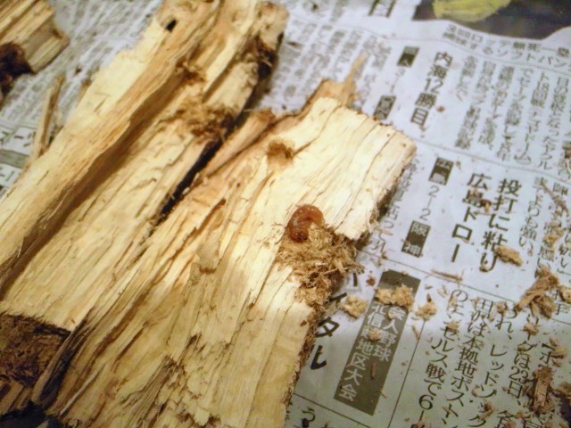 反応のあった材を取り出してしばらく放置してたものを少しずつ割っていきました。