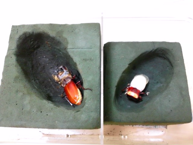 しばらく前に幼虫の時、マットの上に出てきていてめちゃくちゃ縮んだ2頭がいたのをupしました。