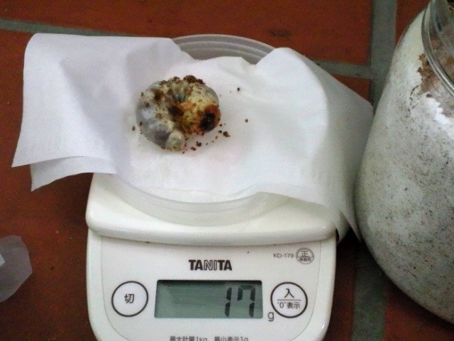 上記にも記述してありますが、もう1本食い上がってきてるのがいるので近日中の交換時にどのくらい体重があるのかが楽しみなところです。この幼虫よりは外からの確認では大きいと感じまずけど、外から見た感じと実際の体重って違うことも多々あるのでそこはあまり期待に胸をふくらませないで作業するその時まで我慢ですね♪