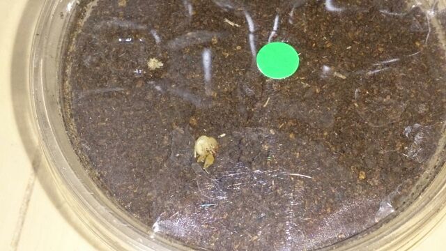 クワガタのネタとしてはボーリンの孵化が待ち遠しい中、産卵セットでマットにこぼれていたサバ産マンディブラリスの卵が雑な管理でも孵化していました。。。
