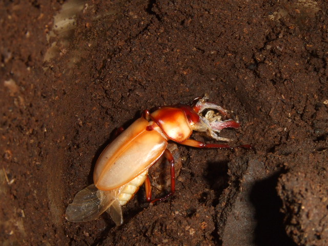 このまえ、処分しようとしていた430ccカップから蛹がでてきてしまったスペキオススシカの様子ですけど、数日後に羽化してるところを見かけました。