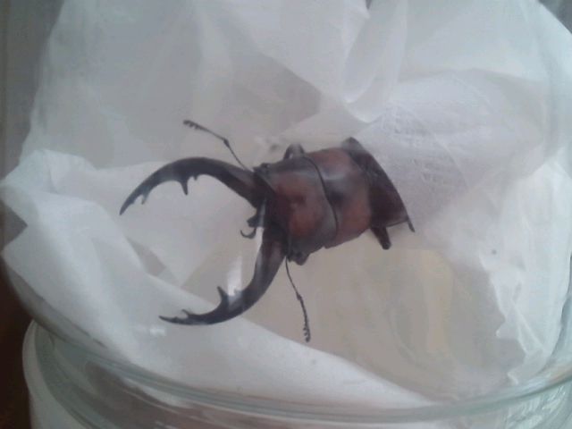 「クワガタが1Fリビングのカーテンにくっついてるんだけど・・!」