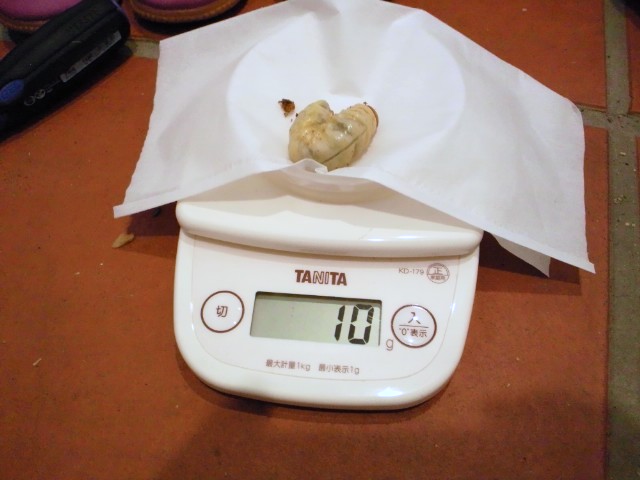 ↓ なんとか10gになってました。2012年の暮れに採れた幼虫ですが、早ければ年内に蛹化??