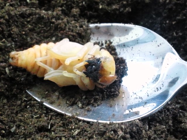 ボトルの外側からは蛹の姿は見えても頭部までは見えなかったんです。