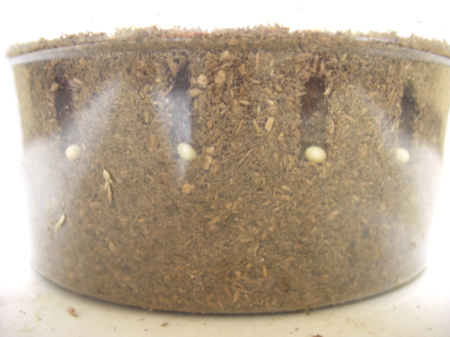 ハイペースで産卵してるメスでも、産む卵が2個同時だったり変形してるような卵、変色してる卵は無駄に材を消費するだけで、テンションも上がりませんけど><
