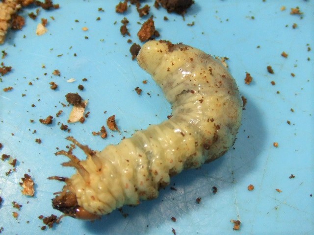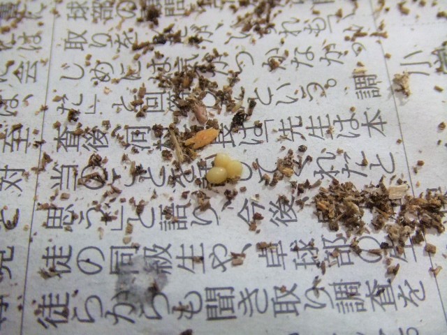 そして、去年の春に孵化したボーリンの幼虫がいるボトルを2本だけ交換しました。6ヶ月くらい菌糸ボトルに放置していましたが、さすがに上部が縮んできたので。